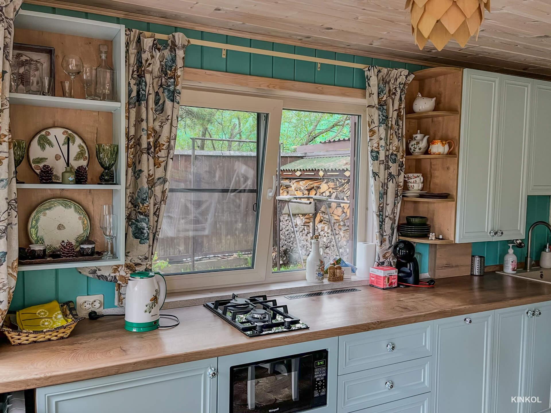кухня, холодильник, плита, духовка, кухонные принадлежности, посуда и столовые приборы, кофемашина, микроволновая печь, чайник, вода, чай и/или кофе
