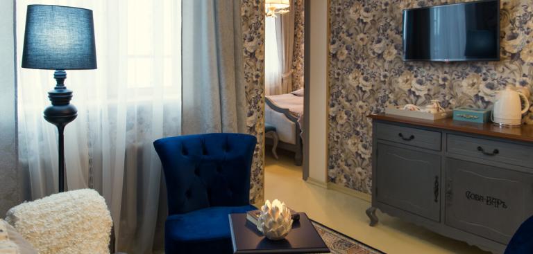 Комфортабельный номер с великолепным видом на Волгу и Соборную гору. Для двух человек, но можно добавить дополнительное место. В номере: двуспальная кровать queen size (160 см), раскладной диван, кресло, бра, напольный светильник, TV, телефон, холодильник, сейф, кондиционер, электрический чайник и чайный набор. Душевая комната с мини-туалетным столиком, халатами, полотенцами, тапочками, феном и набором гигиенических принадлежностей. Бесплатный Wi-Fi для вашего комфорта.