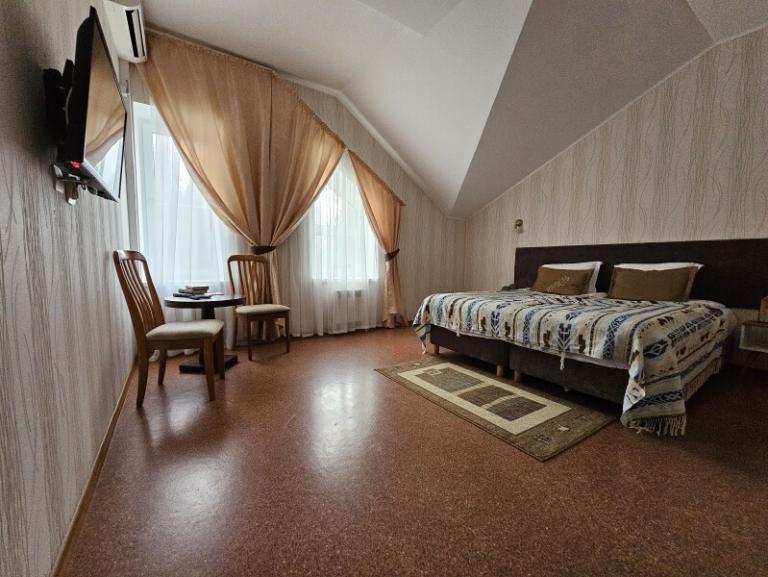 На территории работают восемь номеров разных категорий — от компактных и функциональных до просторных апартаментов с видом на Волгу. Все номера обставлены с заботой о комфорте и оснащены всем необходимым для длительного или краткосрочного пребывания. В отделке интерьеров используются натуральные материалы, а оформление выдержано в сдержанном, домашнем стиле.