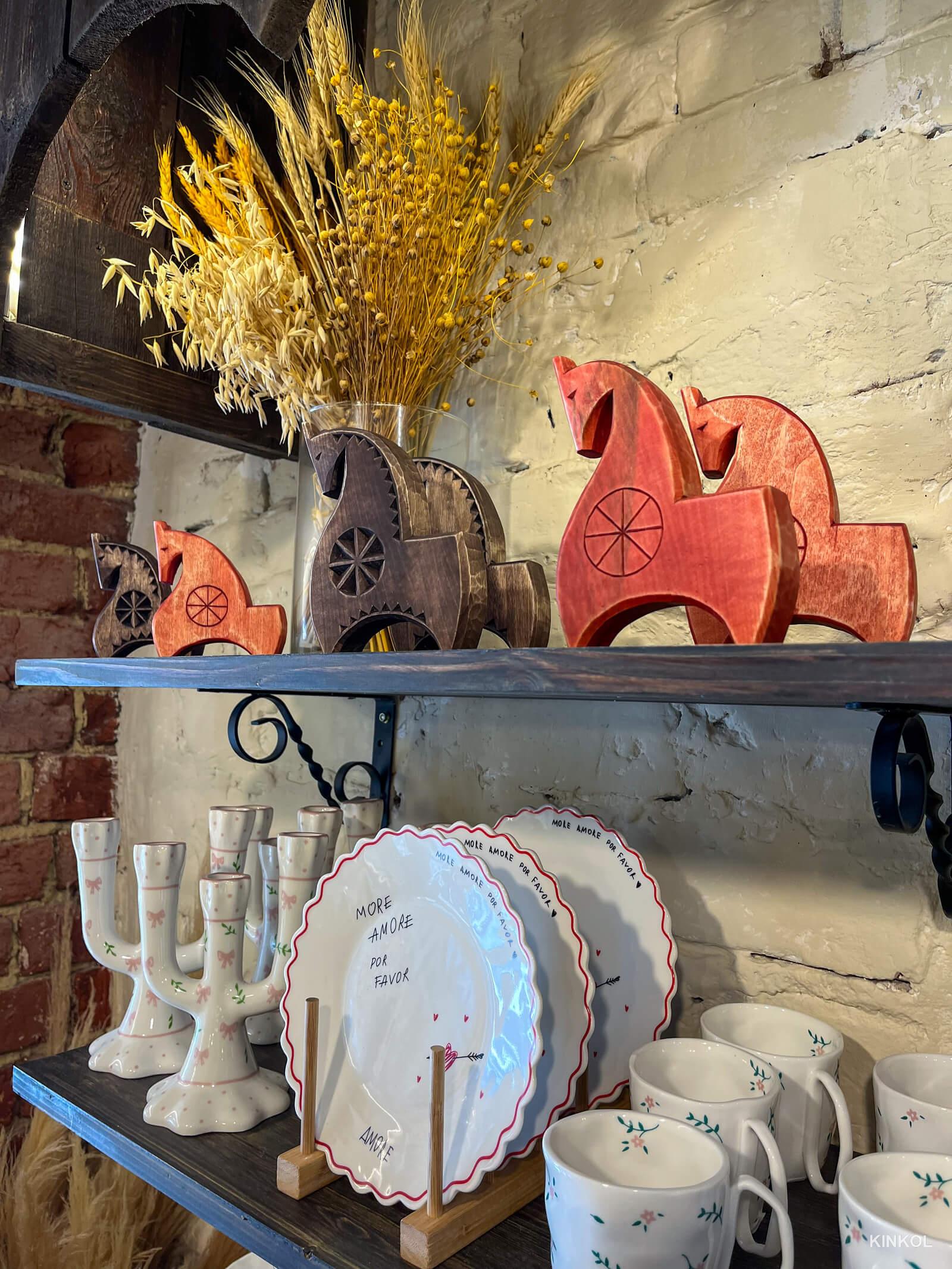 Магазин локальных брендов и ремесленных изделий, расположенный в центре Плёса. Здесь собраны вещи, созданные мастерами вручную: красивая и удобная одежда из натуральных тканей, в том числе льняные изделия с авторскими принтами, керамическая и деревянная посуда, украшения, ароматические свечи самых необычных форм и оттенков, а также оригинальные игрушки для детей.