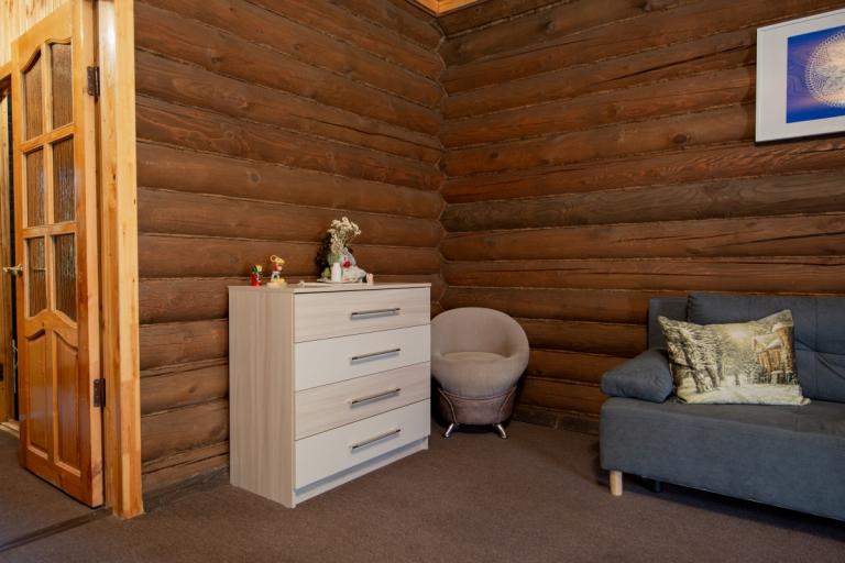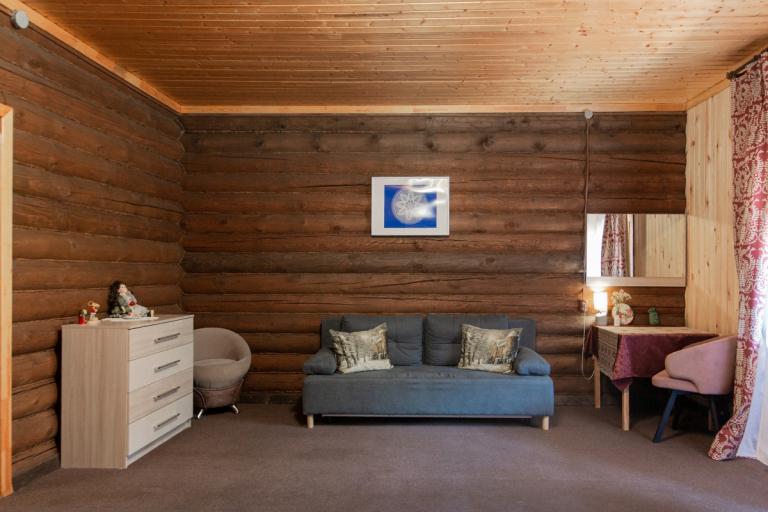 Семейный номер — это идеальный выбор для комфортного проживания всей семьёй. Здесь есть всё необходимое для отдыха: удобная мебель, современная техника и уютная атмосфера. Выход на просторную террасу с видом на лес