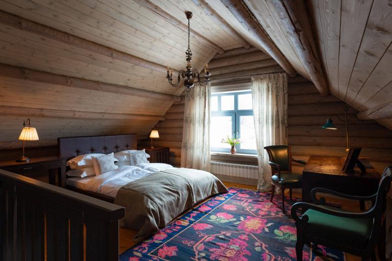 Старинные балки украшают три комнаты: большую спальню с кроватью 180 см и видом на Волгу, малую с кроватью 160 см и окном на юг. В доме 68 кв.м. один санузел и полностью оборудованная кухня.